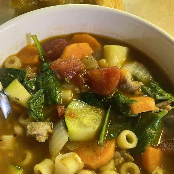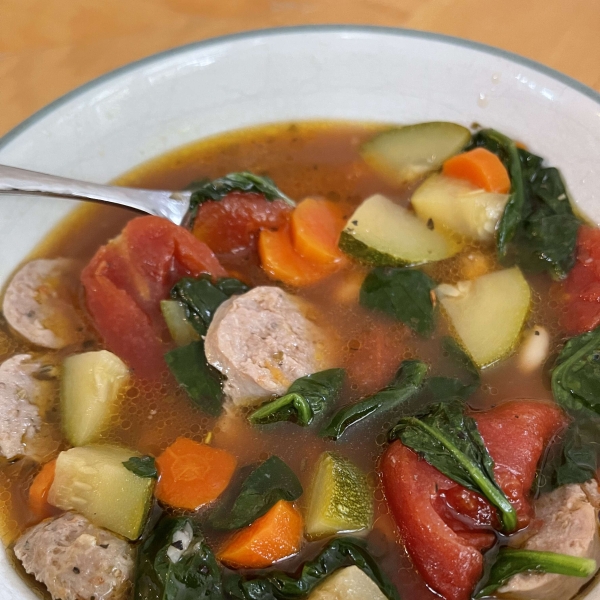 This Italian sausage soup is easy to put together. The flavor of the spicy sausage is balanced nicely by the addition of white beans and spinach.