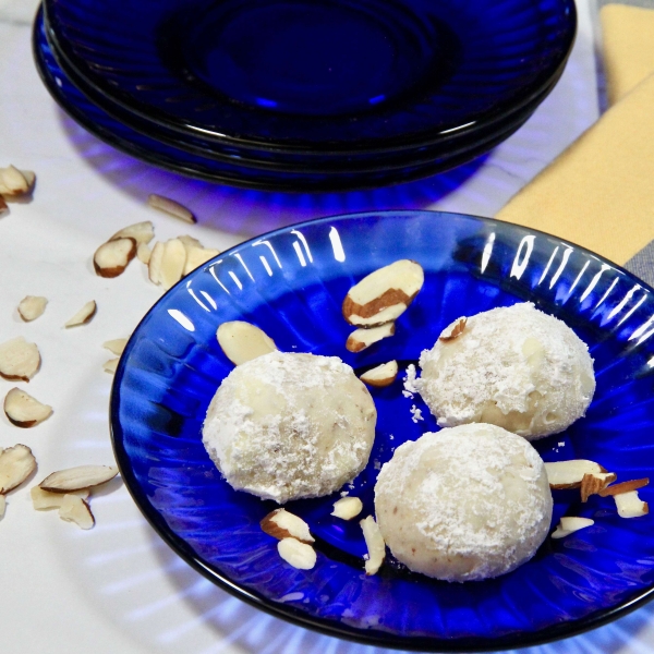 Shape into balls (or crescents) using about 1 teaspoon for each cookie; place 1 inch apart on ungreased cookie sheets.