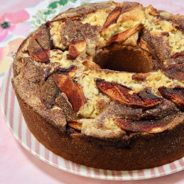 Pour 1/2 of the batter into the prepared pan, then top with 1/2 of the sliced apples and sprinkle with 1/2 of the cinnamon-sugar. Repeat once more with remaining batter, apples, and cinnamon-sugar.