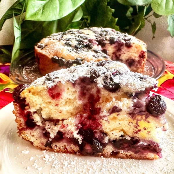 This moist lemon blueberry cake bursting with juicy blueberries features lemon juice and zest in the cake batter for a bright, refreshing flavor.