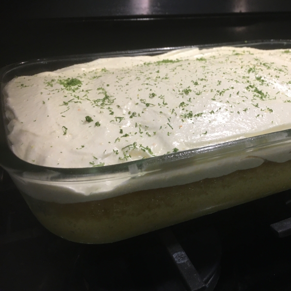 Combine 1 cup hot water and 1 cup cold water with one package of lemon gelatin. Stir until gelatin is dissolved, and pour mixture over cake. Chill in refrigerator until cool.