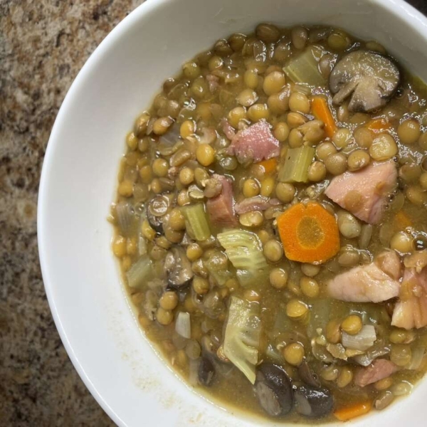 This rich lentil soup with ham recipe is quick and easy to prepare. Mustard, garlic, and a splash of red wine vinegar add a delicious boost of flavor.