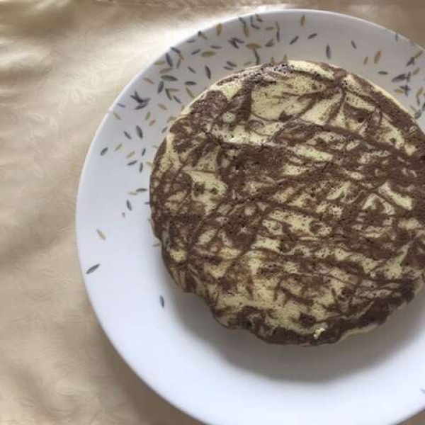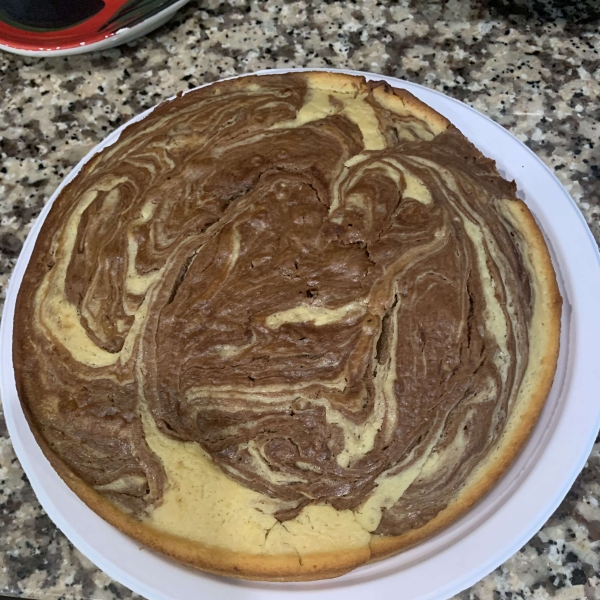 Drop chocolate batter by large spoonfuls on top of vanilla batter; swirl cocoa batter into white batter using a knife to create a marbled appearance.