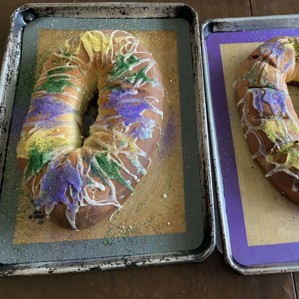 King cake is a sweet and colorful cake filled with cinnamon, sugar, pecans, and, if you're lucky, a plastic baby traditionally served at Mardi Gras.