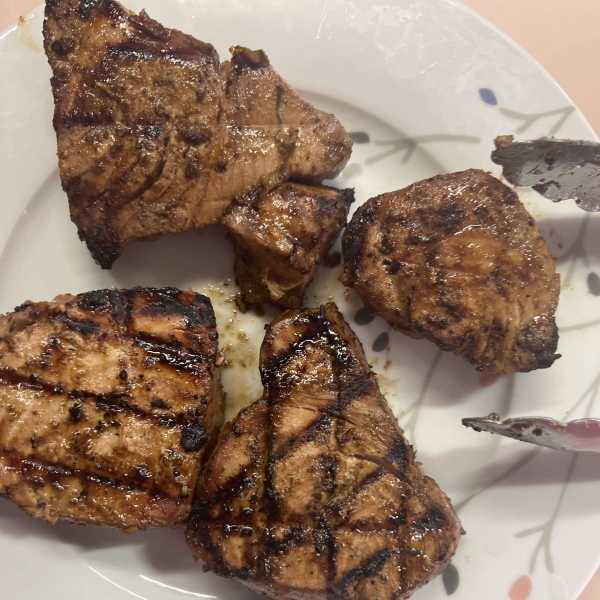 This tuna steak recipe includes a marinade that's easy to make with orange juice, soy sauce, and garlic for a sweet and tangy grilled tuna dinner.