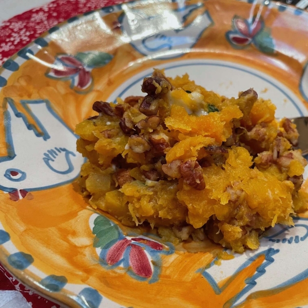 Mashed Butternut Squash with Blue Cheese and Pecans