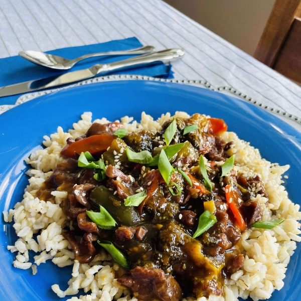 Make Mongolian beef in the slow cooker with a ready-made freezer bag full of flank steak, vegetables, sauces, and spices. Then thaw, cook, and enjoy!
