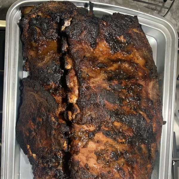 These family-favorite smoked spareribs are slightly sweet and spicy with an apple cider-based mop sauce that complements the fall-off-the-bone meat.