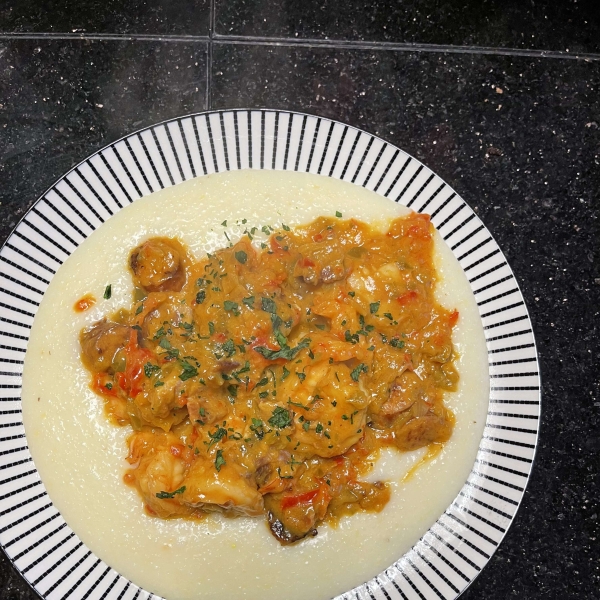 This shrimp and grits recipe is a traditional low-country favorite featuring tender shrimp, andouille sausage, and bell peppers served over cheese-flavored grits.
