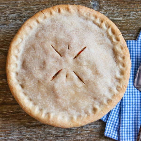 Preheat oven to 350 degrees F (175 degrees C.) Roll one ball out to fit a 9 inch pie plate. Place bottom crust in pie plate. Roll out top crust and set aside.
