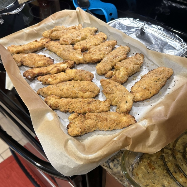 This savory oven-fried chicken is easier and less messy to make than frying; the chicken still gets crispy on top but stays tender and juicy inside.