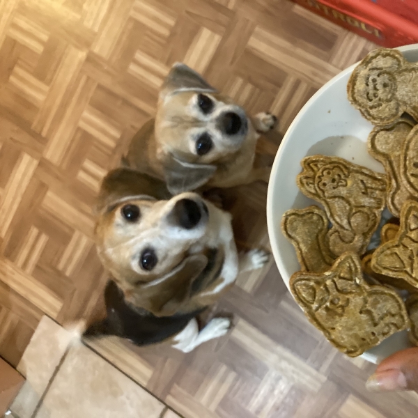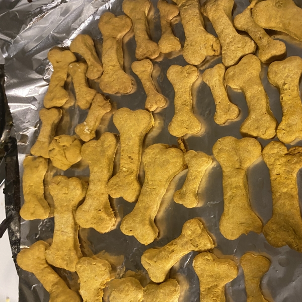 Bake in the preheated oven until dog treats are golden brown and crunchy, about 40 minutes. Let cool before serving to your dog.