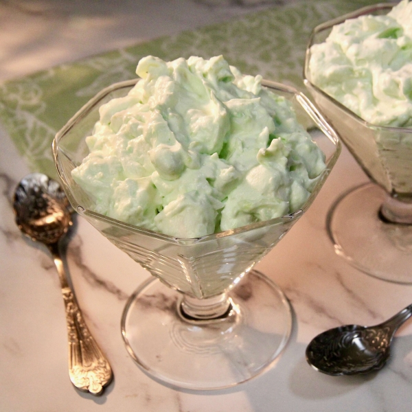 This pistachio salad is super easy to make with pistachio pudding mix, marshmallows, pineapple, and whipped topping for a deliciously fluffy dessert.