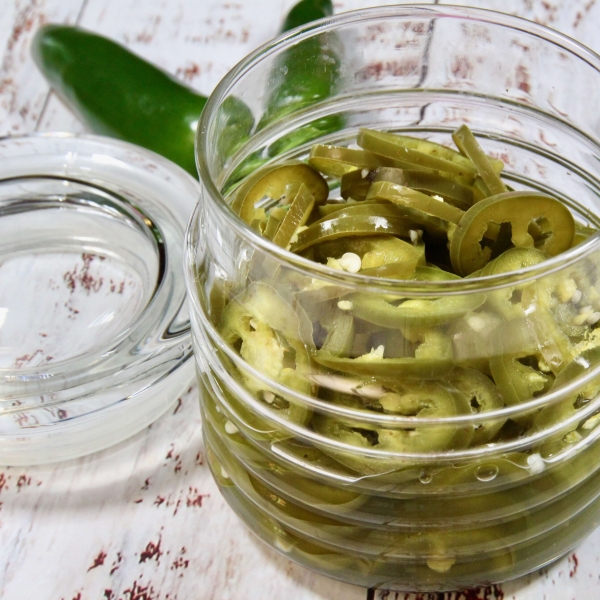 These pickled jalapeños are easy to make using a pickling mixture of vinegar, sugar, garlic, and oregano for a delicious kick on nachos or sandwiches.