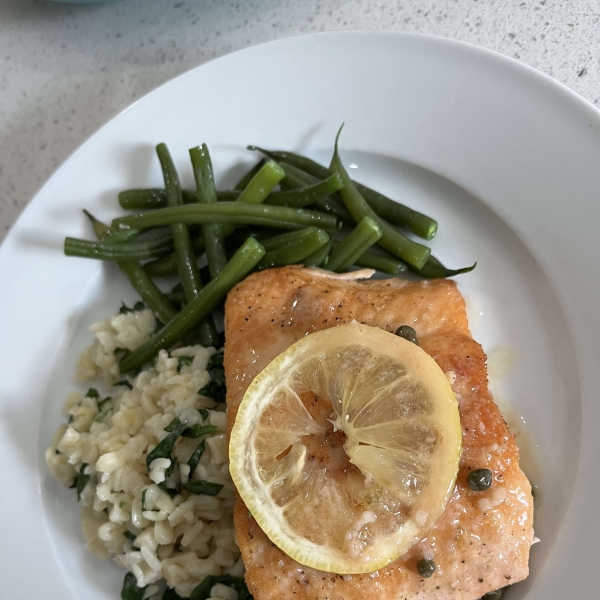 This delicious salmon piccata is ready in under 30 minutes for plating over noodles or rice. Experience fine dining in your own very kitchen!