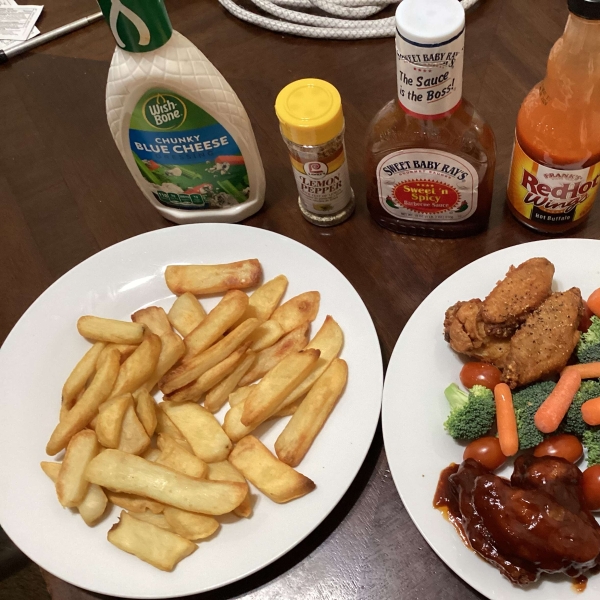 Transfer wings to a platter and drizzle hot sauce over top; or mix wings and hot sauce in a bowl until coated.
