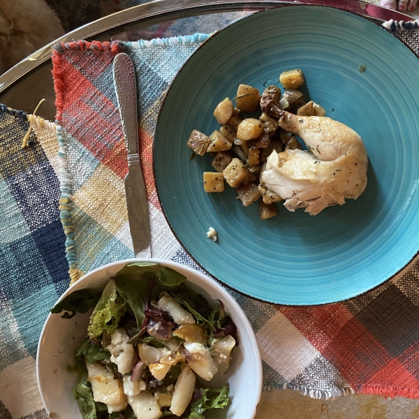 This rosemary roasted chicken is stuffed with onion and fresh herbs for a simple and delicious baked chicken, just like the ones in Italian markets.