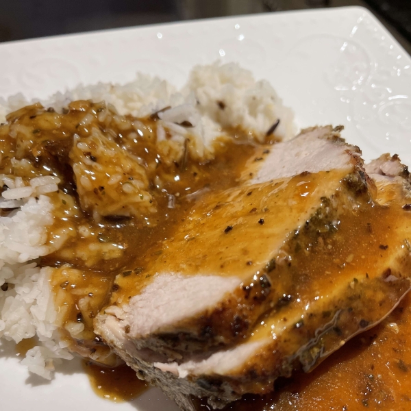 Succulent pork loin roasted with garlic and rosemary and basted with a white wine pan sauce makes a flavorsome and impressive main dish.