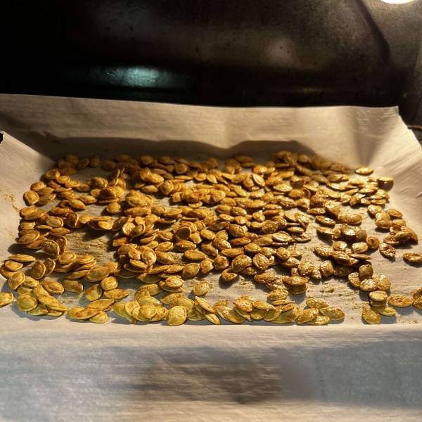 This easy recipe for roasted pumpkin seeds makes the perfect fall snack. You only need 3 ingredients - pumpkin seeds, butter, and salt.