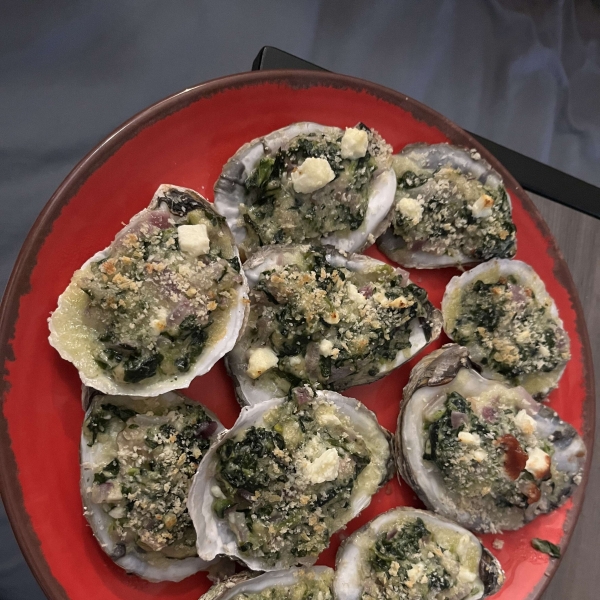 Oysters Rockefeller is a classic seafood dish of half oysters in the shell, topped with creamy sauce and bread crumbs, baked until golden and bubbly.