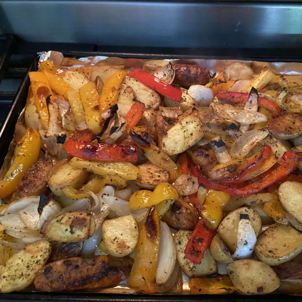 Sausage and potatoes are a classic combination. Combined with peppers, onion, and white wine, this easy Italian bake always delivers.