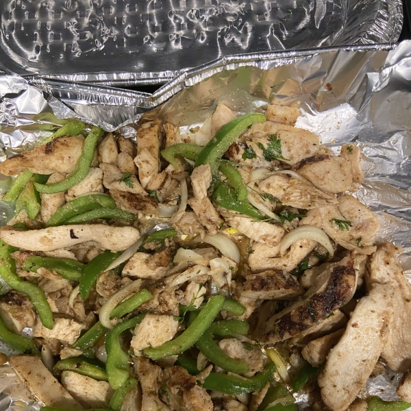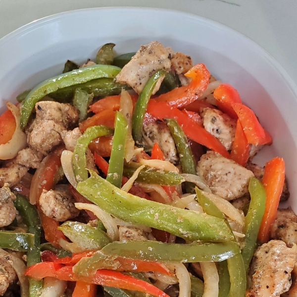 Roast in the preheated oven, stirring halfway, until chicken is no longer pink and bell peppers are softened, 15 to 20 minutes. An instant-read thermometer inserted into the center of chicken should read at least 165 degrees F (74 degrees C).