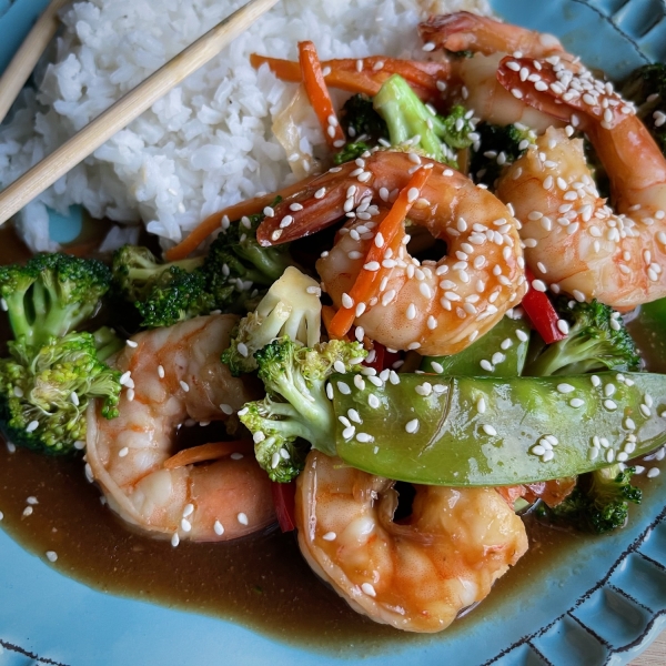 This colorful shrimp and broccoli stir-fry with lots of vegetables comes together quickly for an easy weeknight main dish your whole family will enjoy.