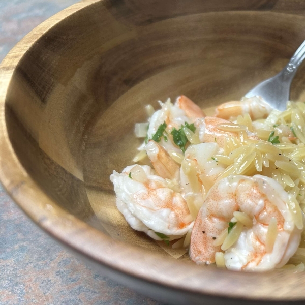 This shrimp scampi with orzo, garlic, white wine, and lots of lemon is easy to make in one pot for a delicious meal full of Mediterranean flavors.