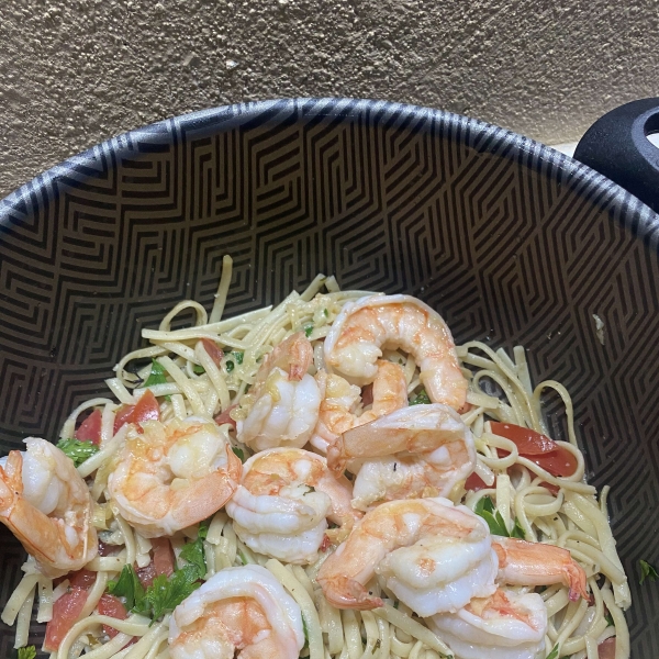 Toss linguine, shrimp, and parsley in the butter mixture until coated; season with salt and black pepper. Drizzle with 1 teaspoon olive oil to serve.