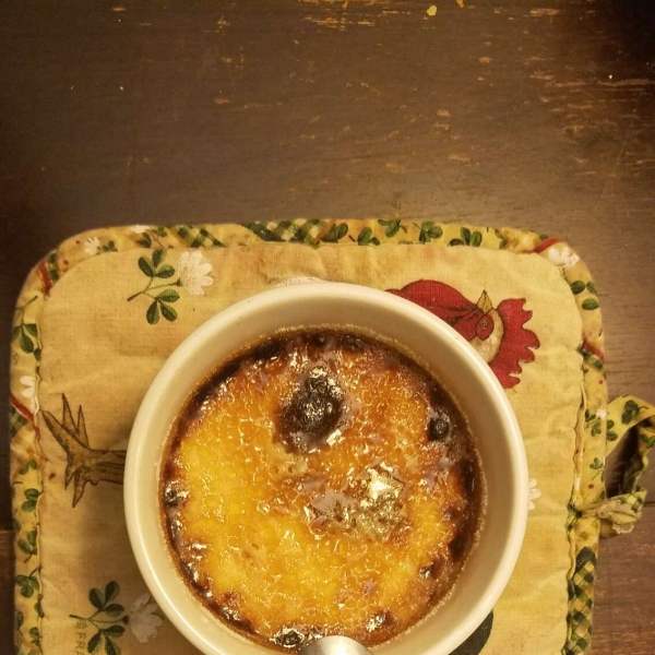 Sprinkle 1 tablespoon of sugar evenly over the top of each dessert. Use a kitchen torch to lightly toast and melt the sugar topping until brown and bubbly, about 30 seconds. Let the sugar topping cool before serving. To serve, use a spoon to crack the crisp sugar open to reveal the creamy dessert underneath.