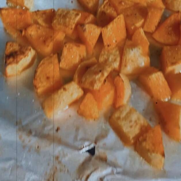Peel butternut squash with a sharp vegetable peeler. Cut in half lengthwise; scoop out and discard seeds. Cut halves into 1-inch slices, then cut slices into 1-inch cubes.