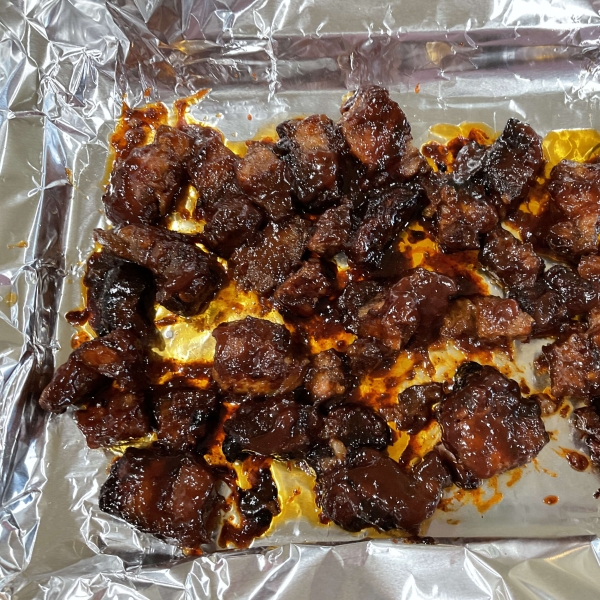 These pork rib tips are cooked with smoky BBQ sauce for hours in a slow cooker until tender, then caramelized under the broiler until hot and sticky.
