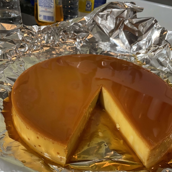 To serve, carefully invert onto a rimmed serving plate; let caramel sauce flow over flan.