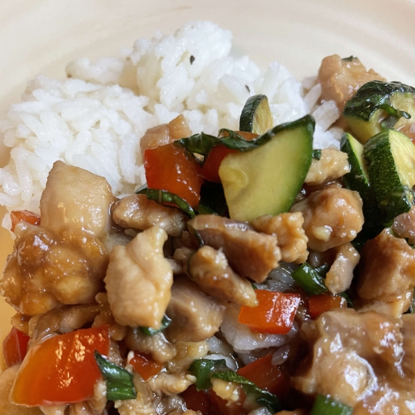 Stir in basil. Cook and stir until basil is wilted, about 20 seconds. Serve with rice.