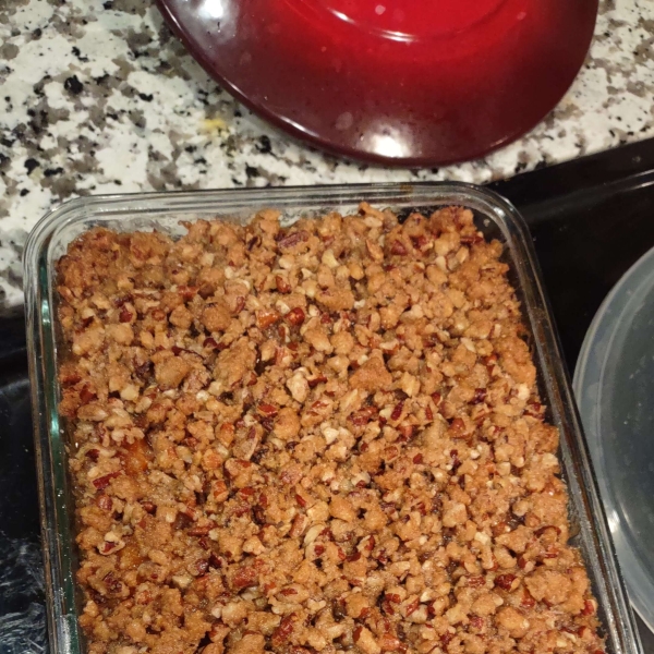 Made with canned sweet potatoes, this sweet potato casserole topped with crunchy pecans is easy to make and a lovely addition to your holiday meal.
