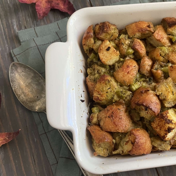 Oyster dressing, made with the traditional ingredients of bread crumbs, celery, onion, and butter, is a staple for many Thanksgiving tables.