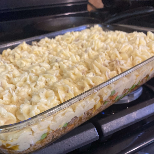This traditional shepherd's pie made with a mixture of ground lamb and beef is topped with a creamy, cheesy mashed potato topping. Sure to be a hit!