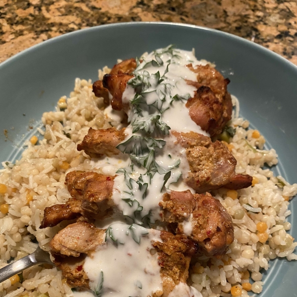Place chicken thigh halves into the yogurt marinade and coat them thoroughly on all sides. Cover the bowl with plastic wrap and refrigerate, 2 to 8 hours.