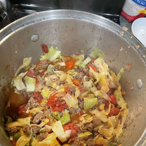 Unstuffed cabbage rolls with ground beef, cabbage, garlic, and tomatoes make a family-pleasing comforting casserole that's perfect for weeknights.