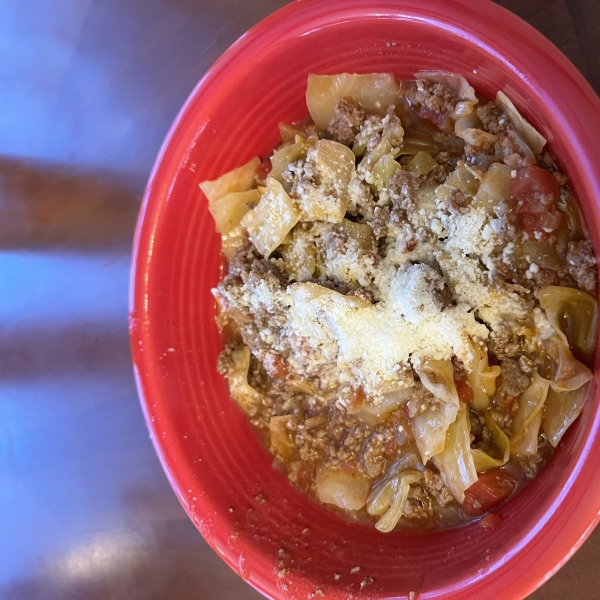 This is an easy casserole made with ground beef, cabbage, garlic, and tomatoes. My kids don't even like cabbage, but they love this. Serve with rice for a comforting weeknight dinner. Also, the longer it stands the better it tastes!