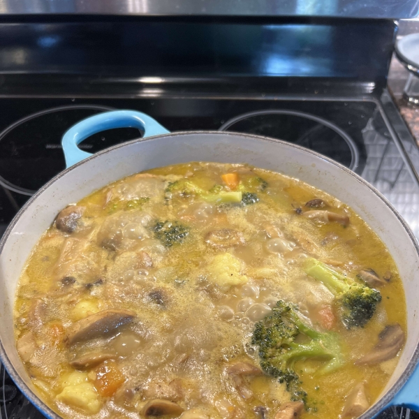 Add broccoli, cauliflower, mushrooms, and water; simmer, covered, until all vegetables are tender, about 5 minutes.